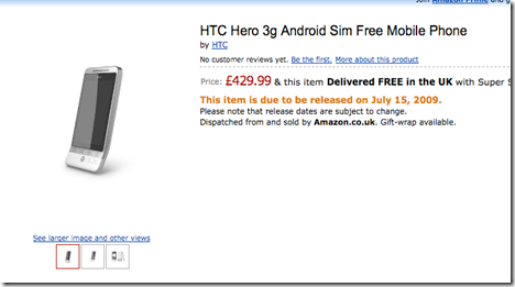 Il nuovissimo HTC Hero, di cui si è tanto parlato negli ultimi giorni, è ormai pronto per raggiungere il mercato. Come vedete dall’immagine qui sopra, il telefono verrà messo in vendita dal 15 Luglio...