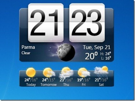 Un team di abili sviluppatori, infatti, è riuscito a creare un widget compatibile per Windows identico in tutto e per tutto all’applicazione ideata da HTC per i suoi smartphone. Come possiamo notare dall’immagine, sarà possibile visualizzare contemporaneamente le informazioni sul meteo e sull’orario, oltre alle previsioni del tempo riguardanti i successivi 5 giorni.