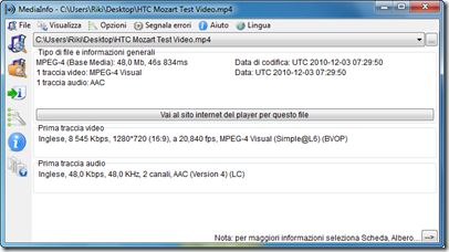 La qualità del filmato mi sembra molto buona. Il video è stato ripreso in HD e questi sono i dettagli completi.