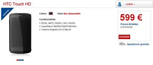 Ad ogni modo, andate a QUESTO LINK per visualizzare la pagina dedicata al Touch HD da Tim. Il telefono sarà venduto a 599€, un prezzo più che onesto per tutta le tecnologia che si porta a casa. Nulla ancora è stato annunciato a proposito della data di uscita, ma, sempre sul sito Tim, è possibile iscriversi alla newslettere che avviserà quando lo smartphone sarà disponibile per la vendita.