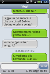 Una volta aperta una specifica conversazione, potremo visualizzare gli sms tramite comode vignette, proprio come accade sul melafonino di Apple. Il programma, inoltre, supporta la visualizzazione e l’inserimento dei vari smiles, per rendere la lettura dei messaggi ancora più piacevole.