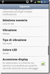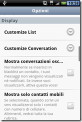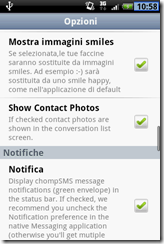 Nel menu delle opzioni, potremo personalizzare a fondo il programma: possiamo modificare le impostazioni di visualizzazione, visualizzare soltanto i numeri di cellulare, visualizzare/nascondere gli smiles e le foto dei contatti, abilitare/disabilitare le notifice, personalizzare le modalità di notifica e il colore del led e tante altre opzioni.