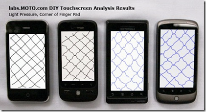 Come possiamo vedere sia nell’immagine che nel filmato, il display dell’iPhone è l’unico a rappresentare delle linee rette, mentre tutti gli altri mostrano linee molto ondulate, segno che non hanno riconosciuto correttamente il tocco del dito.