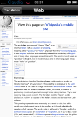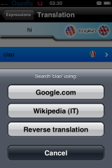 - possibilità di ricorrere a Google e a Wikipedia per avere informazioni aggiuntive su un determinato vocabolo. In questo caso è richiesta la connessione ad internet. Sia Google che Wikipedia saranno aperti nel browser integrato.