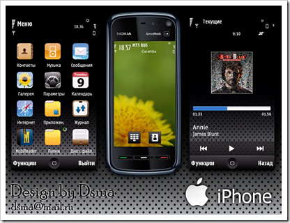 Dsma ha creato un favoloso tema per i nostri smartphone S60 V5, compatibile quindi con Nokia 5800 ed N97, che riprende in ogni sua parte il tema ufficiale dell’iPhone di Apple.
