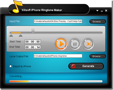 Vuoi creare delle suonerie originali per il tuo iPhone? Xilisoft iPhone Ringtone Maker consente di realizzare ciò perchè consente di convertire praticamente tutti i formati video o audio come AVI, MPEG, WMV, DivX, MP4, H.264/AVC, AVCHD, MKV, RM, MOV, XviD, 3GP, WMA, WAV, RA, M4A, MP3 nel formato M4R (suoneria iPhone), e trasferisce la suoneria creata direttamente nel tuo iPhone!