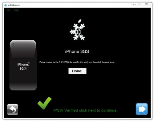 16. Selezionate il firmware chiamato “sn0wbreeze_iPhone_XXX” e confermate.