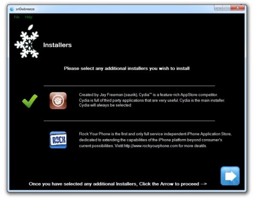 - L’applicazione Sn0wbreeze serve per tenersi aggiornati sulle novità del team e dei loro tools, anche questa è facoltativa;
