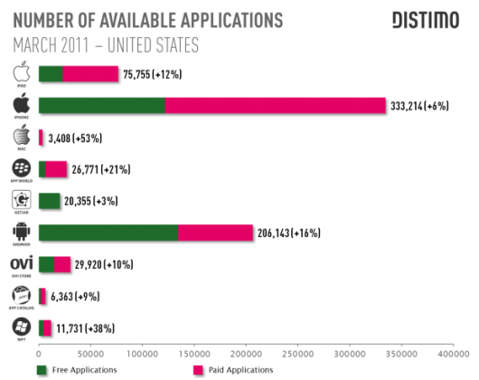 Si può notare che le applicazioni gratuite sono quasi alla pari, però dobbiamo anche dire, per onestà di cronaca ,che comunque per ora le applicazioni a pagamento presenti in Apple Store sono molte di più e che sicuramente fruttano guadagni decisamente superiori per gli sviluppatori .