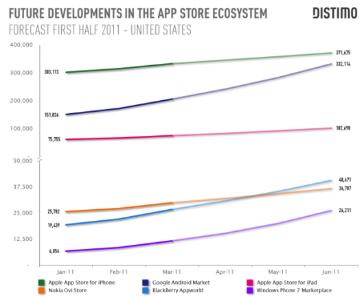 Le analisi presentate da TechCrunch mostrano dei dati veramente interessanti che non riguardano solo la maggior crescita del market di Android rispetto all' Apple Store, si stima un bel 16% del primo contro un 6% del secondo, ma soprattutto il fatto che entro i prossimi 5 mesi l'Android Market possa realmente superare Apple Store in quantità di applicazioni disponibili.