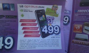 Come testimonia l'immagine ad inizio articolo, Unieuro inizierà a vendere LG Optimus Dual a partire dal 24 Marzo al prezzo di 499€.
