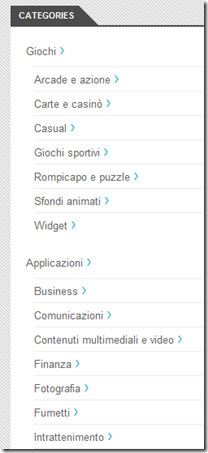 Sul Market consultabile da web tutte le applicazioni sono ovviamente suddivise in categorie, potremo selezionare quelle gratuite, a pagamento, oppure sfogliare le varie sezioni proprio come facciamo solitamente sul nostro smartphone.