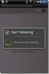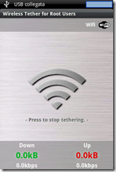 Una volta installato Wireless Tether, non dovremo fare altro che avviarlo e premere l’apposito comando che permetterà di condividere la connessione WiFi.