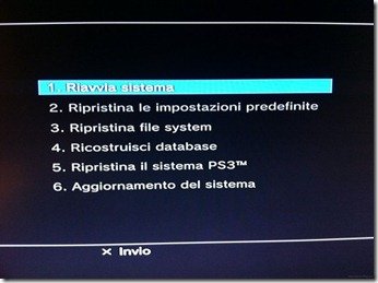 Se avete problemi ad aggiornare la PS3 al custom firmware (o volete ripristinare la console nel suo stato originale usando il firmware originale) dovete selezionare Aggiornamento di Sistema da questo menu. A questo punto inserite la penna USB con il firmware nel percorso corretto (PS3\UPDATE\PSUPDAT.PUP) e premete START E SELECT insieme, seguendo le istruzioni sullo schermo.