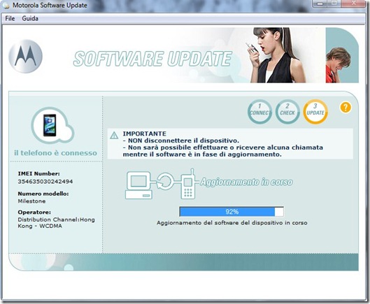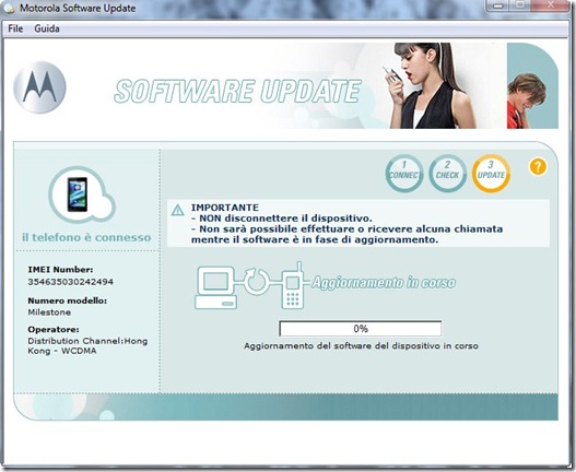 A questo punto colleghiamo il Motorola Milestone al pc tramite l’apposito cavo e, quando richiesto, riavviamo il computer.