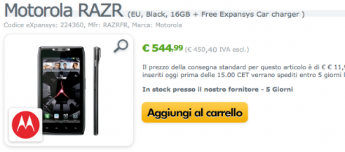 Motorola RAZR dal 5 Novembre su Expansys a 545€