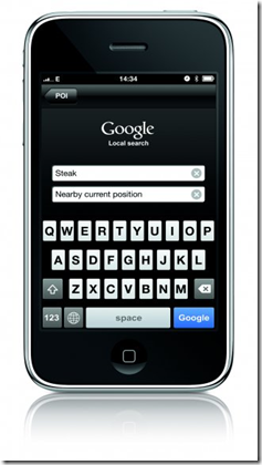 Grazie a Google Local Search gli utenti iPhone possono agilmente trovare la strada verso luoghi dei quali non conoscono l’indirizzo. Basta, ad esempio, inserire “bar” per trovare una esaustiva lista di bar in città così come una dettagliata descrizione di come raggiungere la destinazione preferita.