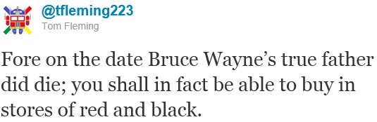 “Nella data della morte del vero padre di Bruce Wayne, sarai in grado di comprarlo nei negozi in rosso e nero”.