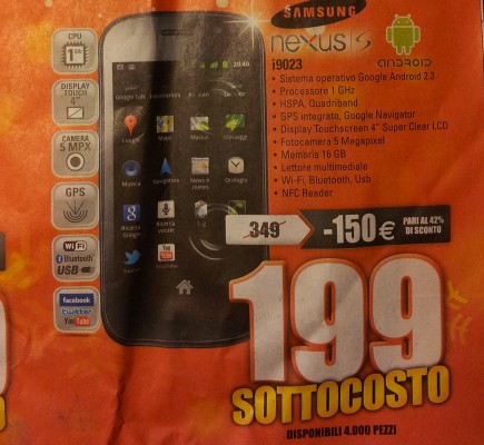 Super Offerta Google Nexus S a 200€