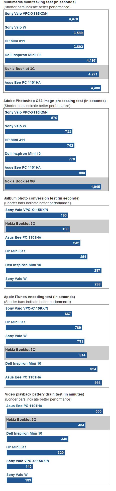 Il Nokia Booklet 3G, primo netbook della casa finlandese, è stato infatti paragonato in termini di prestazioni ad altri netbook della stessa fascia di potenza.