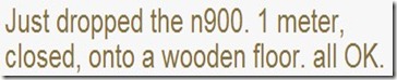 “Ho appena fatto cadere il Nokia N900 da un metro sul pavimento di legno. Tutto Ok”.