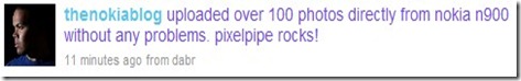 Traduzione: “Ho appena finito di caricare oltre 100 foto direttamente dal Nokia N900 senza nessun problema”.