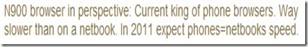 “Il browser internet del Nokia N900 è attualmente il migliore. Più lento rispetto ad un netbook, ma nel 2011 i telefoni dovrebbero raggiungere la velocità dei netbook”.