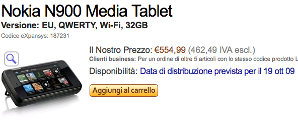 Magari, qualcuno ha letto l’articolo e ha deciso di scontare di qualcosa il terminale. Dunque, oggi N900 è in vendita a “soli” 549€, ben 5€ in meno del prezzo di qualche giorno fa.