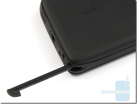 La fotocamera da 5 megapixel con ottica Carl Zeiss Tessar e con doppio flash LED sono sul retro, entrambi coperti con una piccola cover a scorrimento. Lo stand di sostegno al terminale è posizionato accanto al modulo della fotocamera (come nell’ N86 8MP) una interessante caratteristica in più, anche se di dimensioni molto più piccole rispetto a quello dell’ N800 e N810.