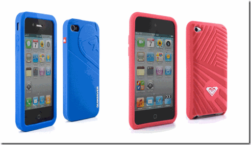 Disponibili per iPhone 4 e iPod touch 4G in entrambe le versioni, le custodie in silicone proteggono con il minimo ingombro da graffi e danni provocati da cadute, aggiungendo un tocco di stile al dispositivo grazie al brillante design in blu o rosa con silicone in rilievo e dal logo Quiksilver e Roxy. Le custodie sono dotate inoltre di comode aperture in corrispondenza di porte e comandi, per permettere di utilizzare il dispositivo direttamente dal loro interno.