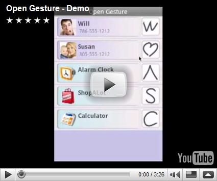 Il programma, chiamato Open Gesture, permette infatti di lanciare le applicazioni o le chiamate semplicemente disegnando una lettera o un simbolo sullo schermo, dopo averlo associato ad un’applicazione o ad un contatto.