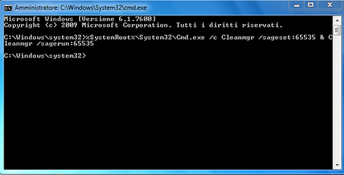 1 - Per accedere alla funzionalità di pulizia disco avanzata clicchiamo su Start, poi andiamo in "Cerca programmi e file digitiamo “CMD”. Nella lista dei risultati facciamo clic con il tasto destro del mouse sulla voce cmd.exe e scegliamo “Esegui come amministratore”. Si aprirà a questo punto la finestra nera del prompt dei comandi.