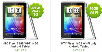 - HTC Flyer WiFi + 3G 32GB costerà 649€.