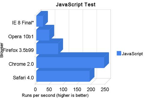 Anche nel test Javascript stravince Chrome. Da evidenziare la figuraccia di Internet Explorer, che crolla in modo imbarazzante, insieme ad Opera.