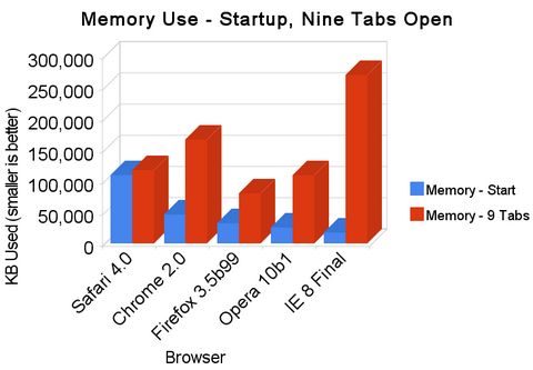 In questo caso è Mozilla Firefox 3.5b99 il browser che gestisce meglio la memoria del computer.