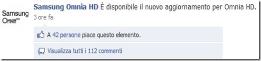 La notizia arriva direttamente dalla pagina ufficiale del Samsung Omnia HD su Facebook.