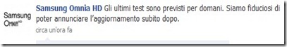 Samsung ha annunciato, tramite il suo canale su Facebook, che domani verrà reso disponibile il download del nuovo firmware per l’Omnia HD i8910.