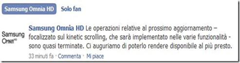 Stando alle ultime comunicazioni ufficiali di Samsung tramite il canale Facebook, il nuovo firmware per Omnia HD dovrebbe vedere presto la luce.