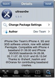 A questo punto digita “ultrasn0w” e scarica il relativo pacchetto.