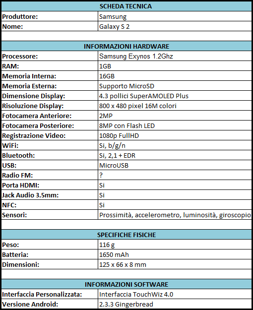 Samsung Galaxy S 2, il primo smartphone Dual Core di Samsung, è ormai pronto per arrivare sul mercato.Di seguito andiamo ad analizzarne la scheda tecnica completa, per comprenderne le caratteristiche...