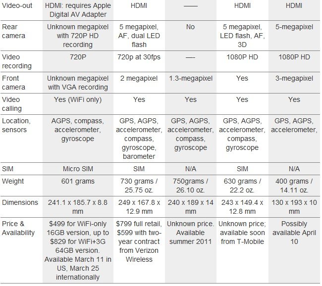 iPad 2 di Apple sarà il primo ed arriverà tra poche settimane, mentre tutti gli altri saranno commercializzati a partire da Aprile, a prezzi che devono ancora essere ufficializzati.