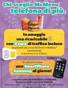 Inoltre tutti i clienti potranno partecipare, registrandosi sul sito di Mcdonald’s ( www.mcdonalds.it), all’estrazione di ben 35 Samsung Pocket 3G.