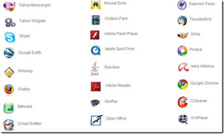 Tanto per farvi un esempio, nel pacchetto potrete trovare: Firefox, Chrome, OpenOffice, Winamp, Skype, Daemon Tools, Picasa, Winamp, Thunderbird, Adobe Reader, WinRar, CCleaner, Google Earth, Bittorent, Gmail Notifier, Google Earth, Java, Flash, Avira Antivirus.