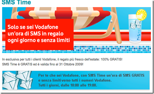 Singolare anteprima di Vodafone Italia, che regala a tutti i suoi clienti un’ora di sms gratis ogni giorno. Come potete vedere dall’immagine, fino al 31 Ottobre 2009, per tutti i clienti Vodafone, in...