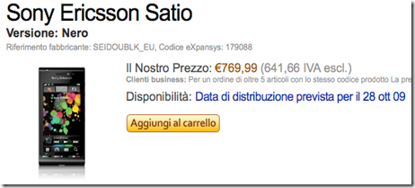 Anche voi, come me, siete ansiosi di mettere le mani sul nuovissimo Sony Ericsson Satio?Finalmente, dopo settimane di attesa, sembra che siano ufficiali il prezzo e la data di uscita. Purtroppo, però...