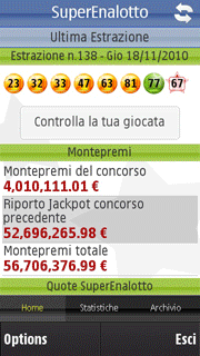 Il programma, realizzato da Alessandro La Rosa, è compatibile con smartphone Symbian S60 5th edition e Symbian^3 e ti permette di avere sempre a portata di smartphone tutti i dati relativi alle varie estrazioni.