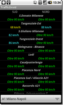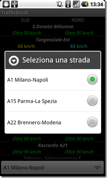 Dopo aver impostato il server, non dovrete fare altro che selezionare l’autostrada o la tangenziale di cui volete avere informazioni. In pochi istanti, grazie alla connessione ad internet del vostro smartphone, tutti i dati saranno scaricati (si tratta di un consumo minimo) e pronti per essere letti.