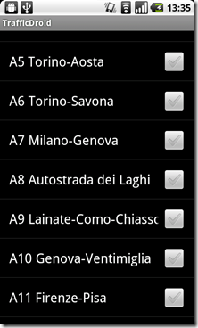 Una volta scaricato ed installato dal Market, TrafficDroid dovrà essere impostato correttamente.