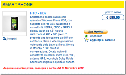 http://www.euronics.it/acquistaonline/telefonia-e-smartphone/smartphone/hd7/prod102009136.html dall’11 (prenotabile, in consegna dall’11) –> ARTICOLO DEDICATO QUI