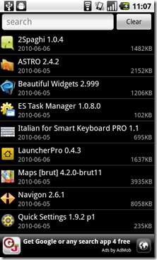 Una volta avviato, Uninstaller andrà a creare una lista dei programmi presenti sul nostro dispositivo, indicando anche lo spazio occupato sulla memoria interna.